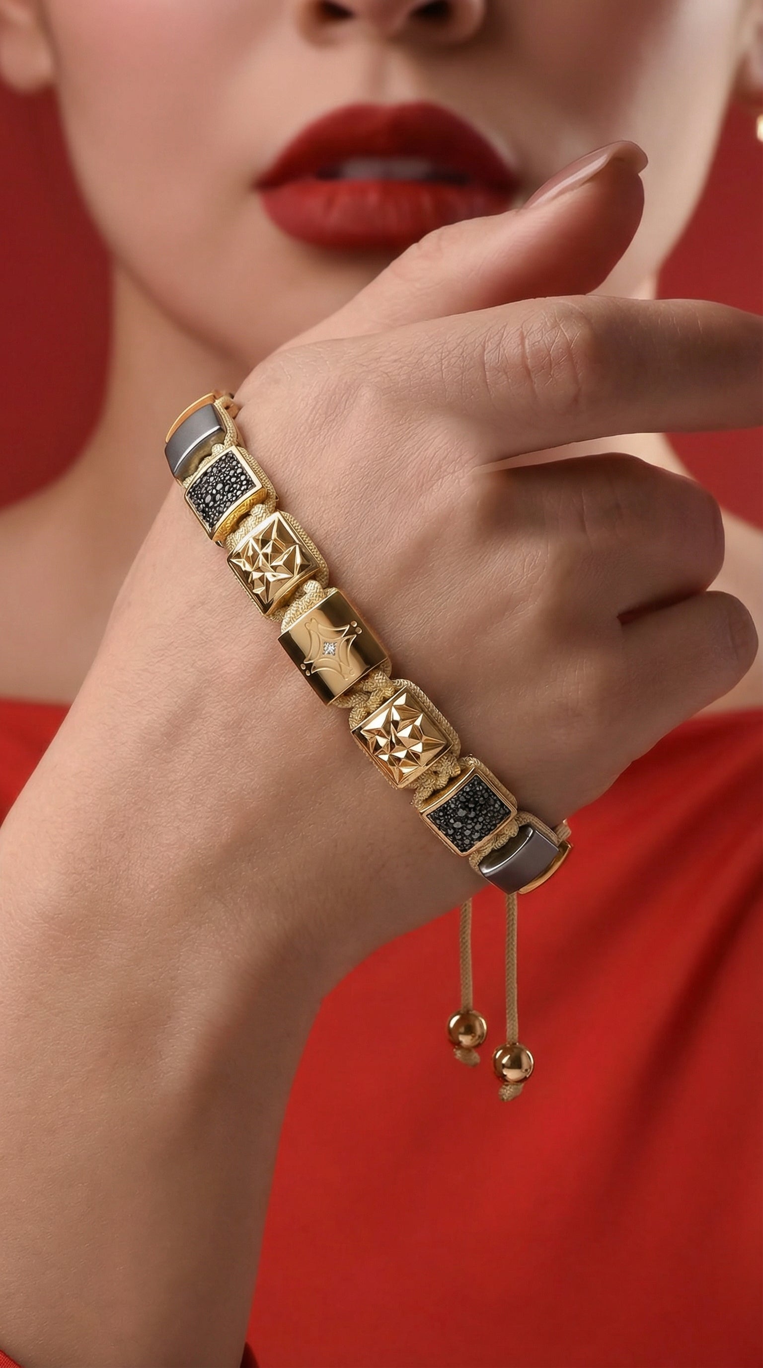 Red Jade, Green Tiger Eye & Gray Stingray - Black Rope