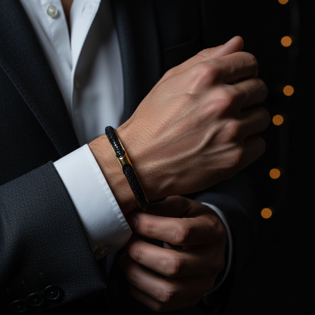 - 5 mm black stingray leather.