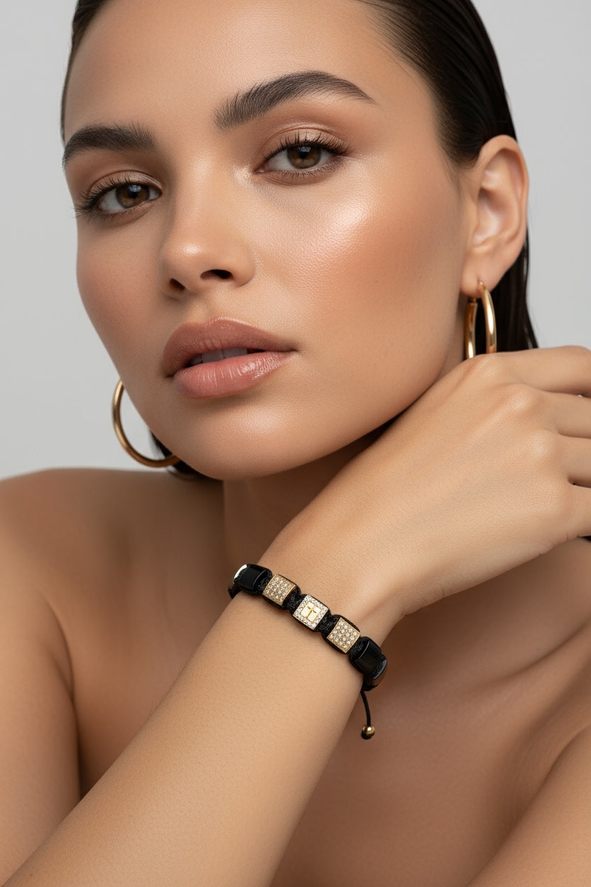 - El imponente onyx, con su tonalidad oscura y misteriosa, evoca la fuerza, la protección y la conexión con lo ancestral. Es una piedra que inspira introspección y autoconocimiento.