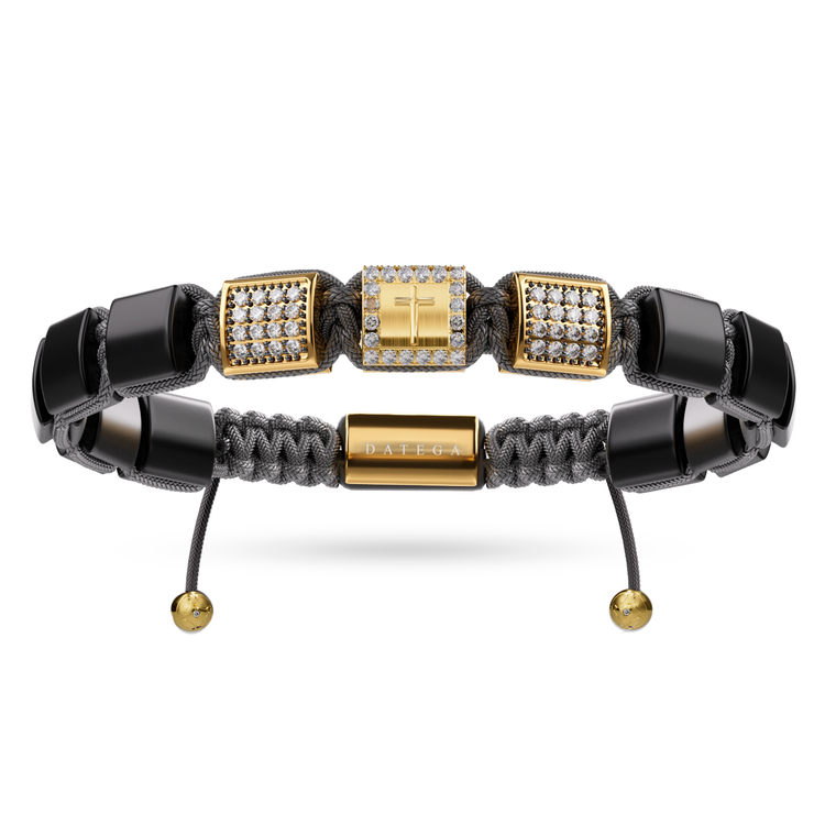 En el centro, una cautivadora cruz de plata que se se alza, rodeada por el brillo deslumbrante de los cristales de Swarovski. Esta cruz, símbolo de fe y esperanza, también representa el equilibrio entre lo divino y lo humano, lo espiritual y lo físico.