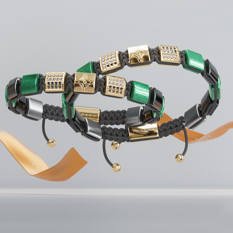 Déjate envolver por la poderosa energía del ojo de tigre verde, una piedra que atrae fortuna, estabilidad y prosperidad compartida. Esta pulsera simboliza el equilibrio que se alcanza cuando dos energías se complementan: la fuerza de la naturaleza reflejada en sus tonos verdes profundos y el brillo dorado que representa conexión y la abundancia mutua.