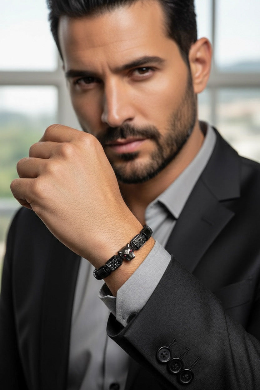 - Jaguar bañado en rutenio con insertos en ojos de Swarovski rojo