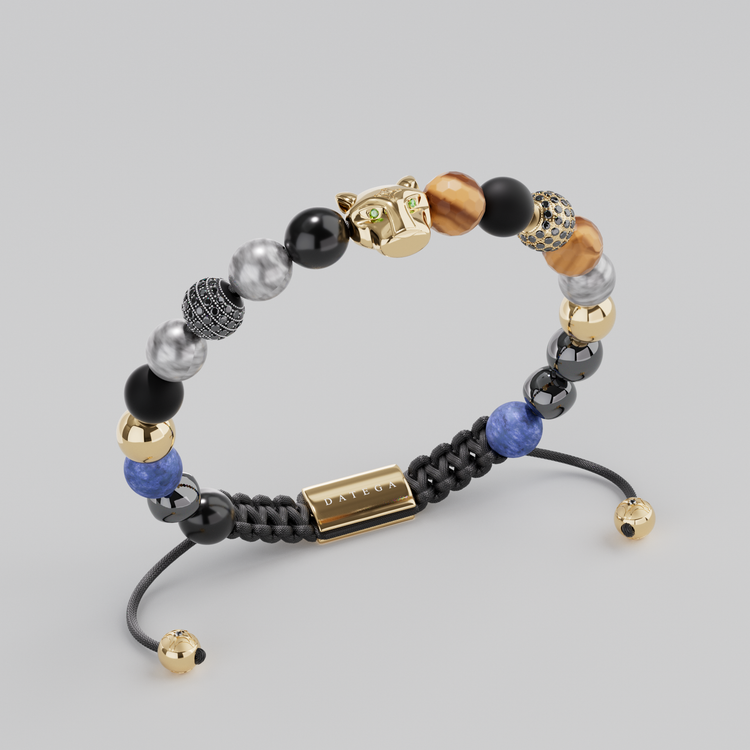 - Jaguar de 15 mm bañado en oro amarillo de 18kt con insertos de Swarovski.