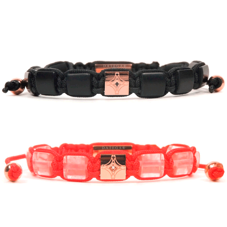 - Cuadros de 8 mm bañados en oro rosado de 18kt con insertos de zirconia negra.