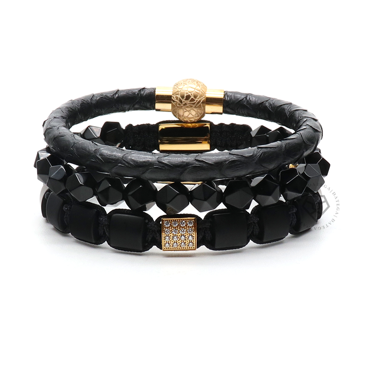 - Brazalete magnetic lock piel de pitón negro con broche con baño en oro amarillo de 18kt.
