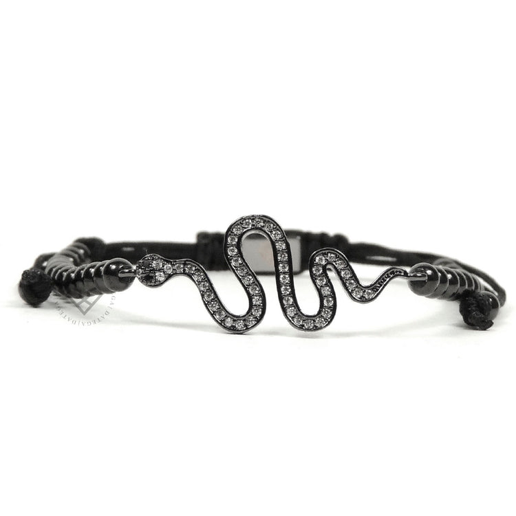 - Víbora de 30 mm bañada en rodio con insertos de zirconia clara.