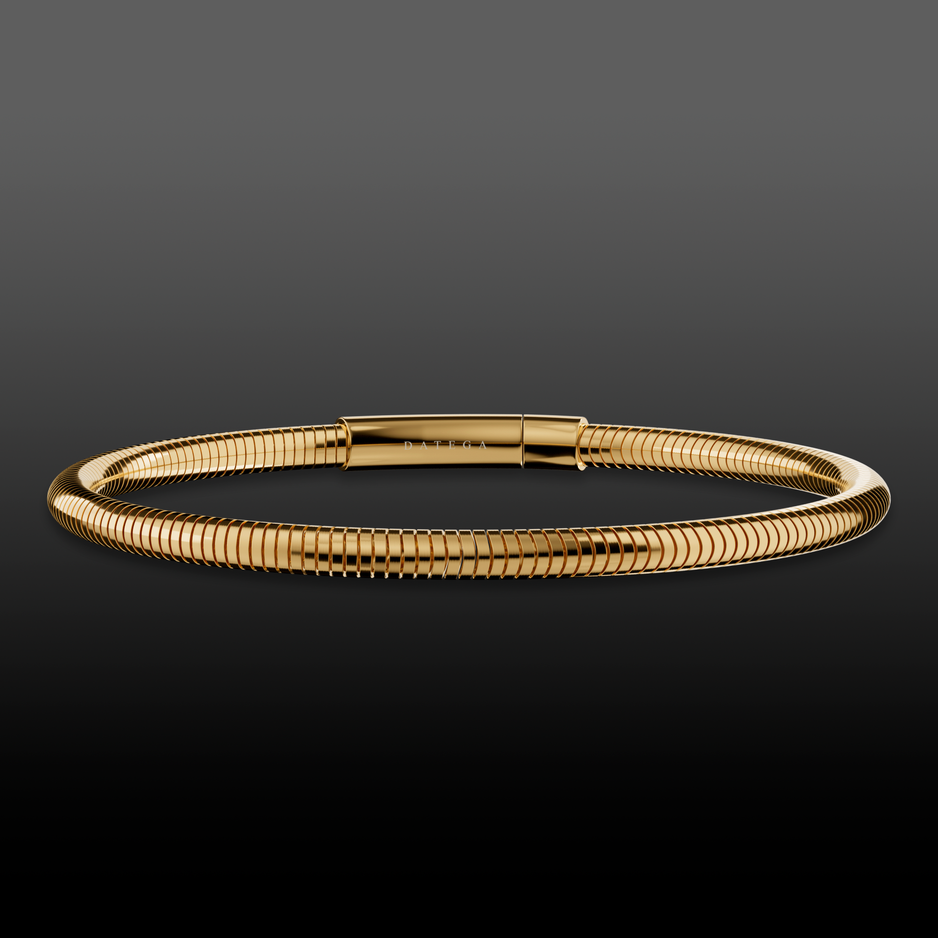 Pulsera de cadena plana estilo serpiente y broche tipo clip bañada en oro amarillo de 18kt, su delicado diseño es ideal para usar en conjunto con cualquiera de nuestros diseños.