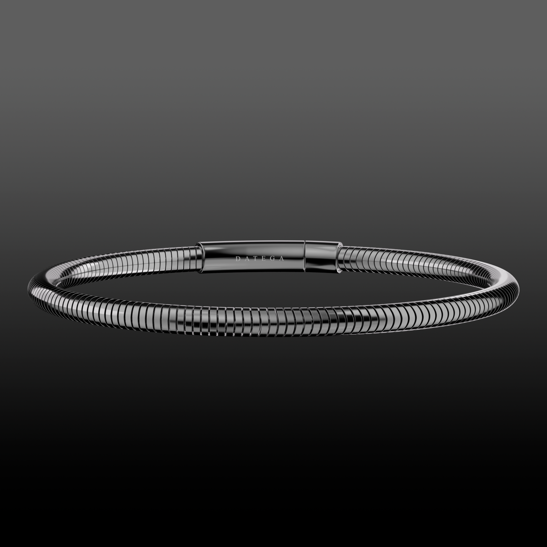 Pulsera de cadena plana estilo serpiente y broche tipo clip bañada en rutenio, su delicado diseño es ideal para usar en conjunto con cualquiera de nuestros diseños.