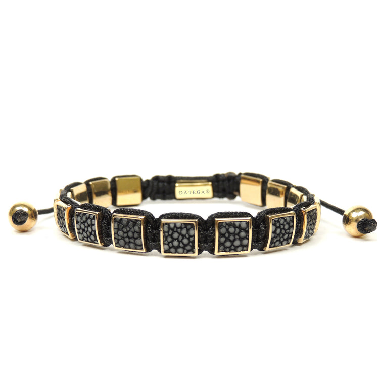 - 18kt yellow gold plating base with black stingray leather inserts.
